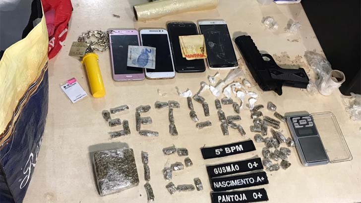 Uma equipe da PM fazia patrulhamento pelo local quando viu a dupla em atitude suspeita. Abraão B. S., 21 anos, João Victor A. P., 20 anos, e um Edvaldo de 41 anos que tentou incitar a população contra a guarnição.