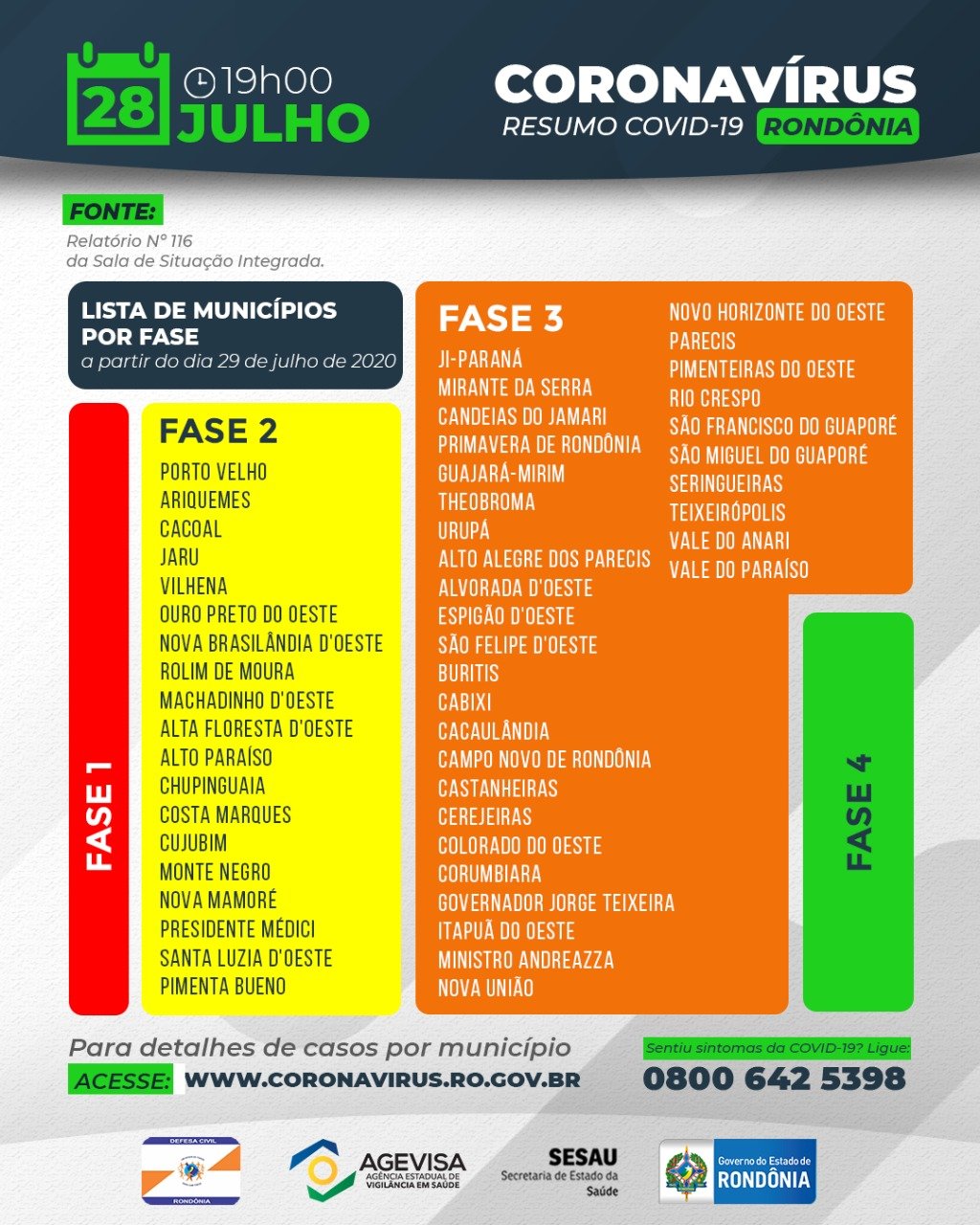 Porto Velho que estava na fase 3 passa para a fase 2, porém quase nada muda pois o Governo já havia alterado as regras para beneficiar o comércio.