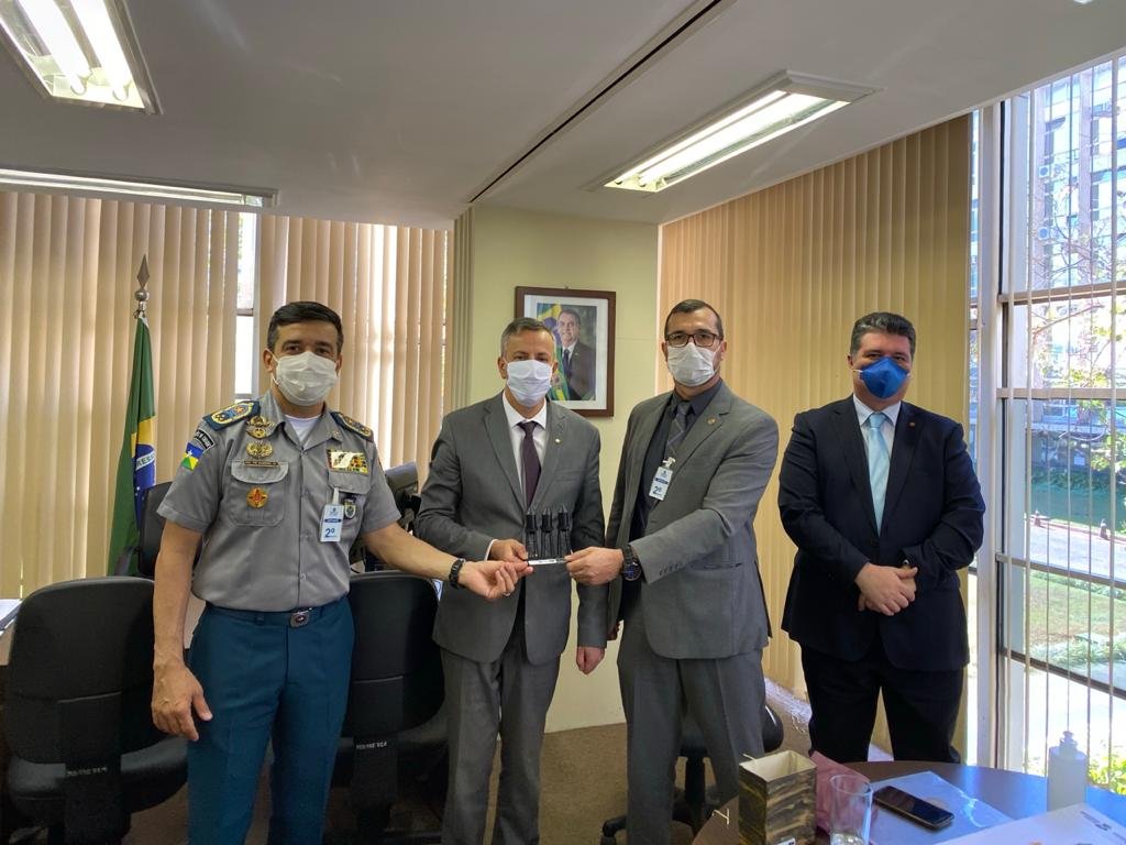 O Comandante Geral da Polícia Militar do Estado de Rondônia, coronel Alexandre Luís de Freitas Almeida, acompanhado do Secretário de Estado da Segurança, Defesa e Cidadania, coronel José Hélio Cysneiros Pachá, realizaram uma visita previamente agendada ao Gabinete do Secretário Nacional de Políticas sobre Drogas, Luís Roberto Beggiora.