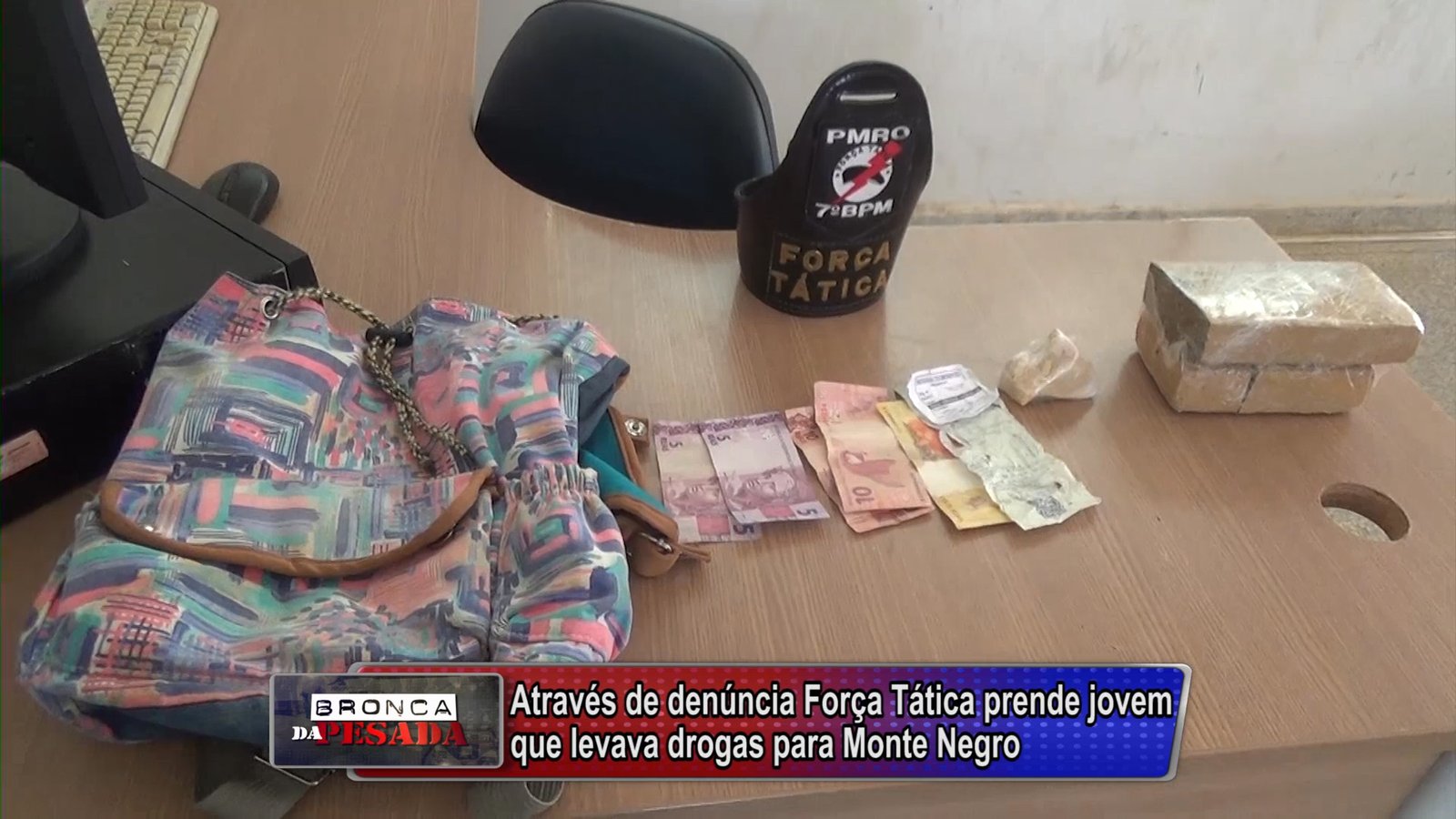 Por volta das 10h20m dessa terça-feira, 25/08, a guarnição da Polícia Militar denominada Força Tática recebeu uma denúncia anônima que uma mulher branca de camisa branca listrada, calça jeans e tênis rosa, estaria em atitude suspeita no Terminal Rodoviário de Ariquemes. De imediato foi feito deslocamento até a rodoviária, onde os policiais constaram que a mesma já havia embarcado em um ônibus da empresa Marlin, que se deslocaria para Monte Negro e Buritis. Foi feita abordagem e ao observarem que a mesma estava nervosa, decidiram revistar a bolsa da suspeita. Ao realizar a revista, foi encontrada a quantia de 1.080 kg de Maconha e 102 g de Crack. Ao ser questionada a respeito da droga, a mesma afirmou ser de sua propriedade e estaria transportando para a cidade de Monte Negro onde reside. Mediante as constatações a mulher recebeu voz de prisão e foi conduzida à Unidade de Segurança Pública (UNISP), onde foi entregue à autoridade policial plantonista para o registro do Boletim de Ocorrência Policial e tomada de providências cabíveis. Atuaram nessa ocorrência os policiais: Cabo P. Roberto, Cabo Hamer e PM Cerqueira.