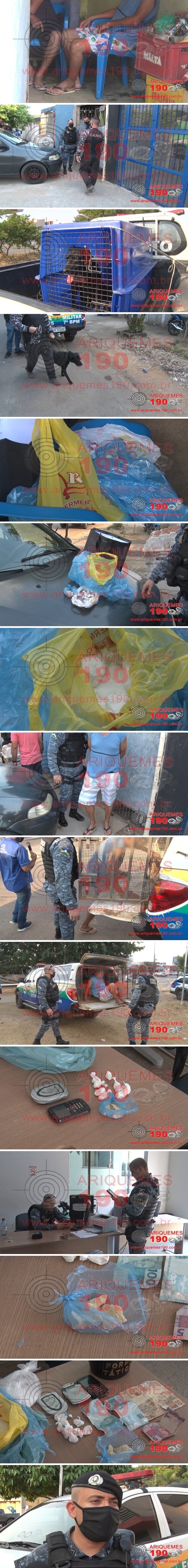 Já passavam das 16h30m dessa terça-feira, 25/08, quando a guarnição da Polícia Militar denominada Força Tática, realizava patrulhamento de rotina pela cidade, quando recebeu uma denúncia anônima de que em uma residência localizada na Rua Rio Grande do Norte, Setor 05 em Ariquemes teria sido visualizado um elemento em um veículo de cor cinza, o qual teria chegado e teria feito contato com o morador, e lhe passado uma sacola com algo dentro e que ali funciona um comércio de entorpecentes. Diante da denúncia, os policiais se deslocaram ao local indicado, onde ao chegar nas proximidades já foi visualizado que seria um ponto já denunciado por outras vezes como sendo local de tráfico de drogas, porém até então nunca teria sido flagranteado o comércio ilegal. Ao chegar no local os policiais visualizaram um homem, posteriormente identificado como sendo L.C.S., 49 anos, o qual encontrava-se na frente do portão e ao visualizar a guarnição adentrou rapidamente, sendo acompanhado e alcançado já no interior da residência. Dentro da casa foi avistada a sacola da referida denúncia, na qual em seu interior foi encontrada uma grande quantidade de uma substância de cor branca aparentando ser Bórico. Foi realizada revista na residência e localizada em cima de um rack uma sacola contendo 26g de uma substância aparentando ser Pasta Base de Cocaína, e embaixo da cama do elemento foi encontrada outra sacola com a quantia de 16g de uma substância aparentando ser entorpecente do tipo Cocaína, sendo que esta já encontrava-se preparada para o comércio, dividida em 8 porções. Ainda na casa foi encontrada uma balança de precisão usada para o comércio de entorpecente. Ao ser questionado a respeito da droga, o elemento confessou que as tinha para o comércio ilícito. Foi acionado o Canil do 7° BPM, que se fez presente com o Sd Zanioli, Sd Aguiar e A K9 Belinha, sendo realizadas as buscas pelo animal e nada mais foi localizado. Diante do flagrante da traficância, foi dada voz de prisão ao meliante, que foi conduzido e apresentado na Unidade de Segurança Pública (UNISP) para registro do Boletim de Ocorrência Policial e tomada das medidas que o caso requer.
