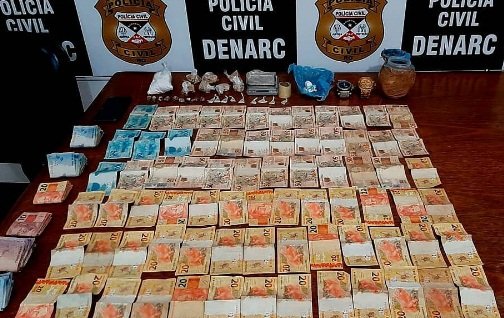 As investigações apontaram que o casal comercializava drogas causando terror na pequena população. Em resposta, os policiais do DENARC cumpriram um mandado de busca na residência e encontraram grande quantidade em dinheiro, porções de maconha, cocaína oxidada e em pó, além de apetrechos usados no comércio de entorpecentes.