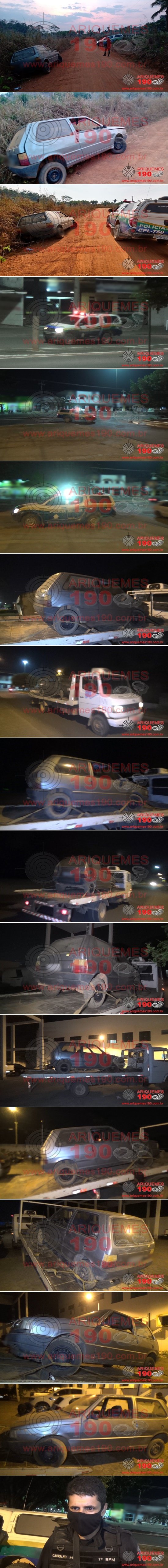O fato ocorreu quando a guarnição da Polícia Militar realizava patrulhamento pela Linha C-70, entre os Travessões B-20 e B-10, zona rural em Ariquemes, momento em que os policiais visualizaram o veículo Fiat/Uno Aky 5050, parado às margens da estrada com as portas abertas. Diante dos fatos foi realizado consulta veicular via Sinesp, onde foi constatado que o bem possuía restrição de roubo/furto. Diante da confirmação foi feito contato com a Central de Operações do 7° BPM de Ariquemes, onde o proprietário do veículo foi contactado e informado da recuperação de seu bem para que providenciasse a condução do carro até a Unidade de Segurança Pública (UNISP). O registro do Boletim de Ocorrência Policial para tomada de providências necessárias.