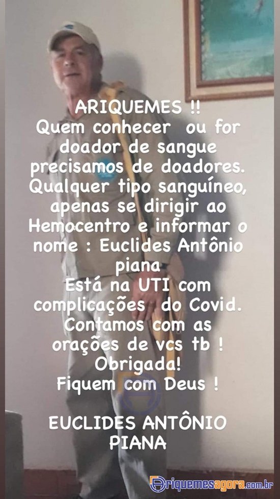 Com pesar que comunicamos o falecimento do Sr. Euclides Antônio Piana O Popular Gaúcho, vitima de COVID-19 em Ariquemes onde estava hospitalizado a vários dias.