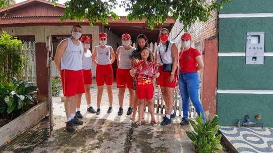 Na oportunidade, integrantes do Bombeiro Militar Mirim do 5°GBM participaram e ajudaram na entrega dos presentes às crianças.