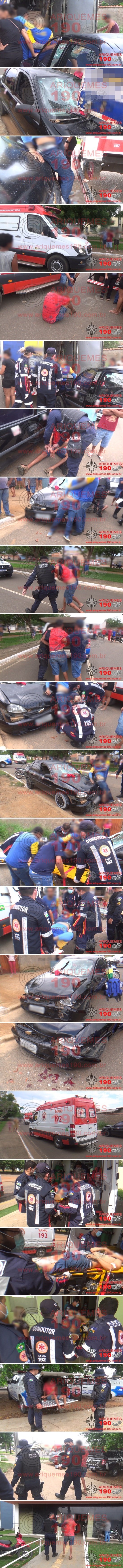 Na tarde deste sábado, 31/10, por volta das 14h09m, as Centrais do Serviço de Atendimento Móvel de Urgência (SAMU) e do 7°Batalhão da Polícia Militar, foram acionadas para comparecer na Avenida Jaru do Setor 8 em Ariquemes/RO, pois no local teria ocorrido um grave acidente de trânsito. De imediato, duas equipes do SAMU em duas Unidades de Suporte Básico (USB) e a guarnição da Polícia Militar denominada Patrulha COVID-19, composta pelos policiais: CB Dombroski, SD Joziel e SD Joca, se deslocaram até o local, onde ali chegando, encontraram um jovem imprensado entre um carro e um caminhão de entrega, o qual apresentava fraturas expostas em ambos os membros inferiores. De pronto os socorristas iniciaram o atendimento de primeiros socorros à vítima, sendo esta imobilizada em prancha rígida. Após os procedimentos realizados à vítima, esta foi encaminhada à Unidade de Pronto Atendimento (UPA), para ser avaliada pela equipe médica de plantão. Ao conceder entrevista à equipe de reportagens do Site Ariquemes190 e Canal 35.1 Digital, o Médico do SAMU Dr. Mauro Lopes relatou que a vítima estava calma, verbalizava, porém sofreu fraturas expostas de tíbia e fíbula, comprometimento vascular, lesão muscular, lesão óssea e de tendão, no qual foi necessário realizar um torniquete para estancar o sangramento, o qual foi retirado na UPA. Populares informaram aos policias que o acidente aconteceu quando o entregador de uma loja de eletrodomésticos estava descarregando materiais em uma residência, quando no mesmo sentido vinha o condutor que trafegava em seu veículo Chevrolet/Classic, de cor preto com placas de Porto Velho/RO, pela Av. Jaru, momento este que chocou no meio fio e colidiu na traseira do caminhão, que estava estacionado à margem da via, ocasionado a prensa da vítima entre os dois veículos. Segundo narra o Boletim de Ocorrência Policial (BOP) n° 214026/20, o condutor do veículo Classic foi preso em flagrante, pelos crimes de lesão corporal gravíssima, bem como pela embriagues que foi devidamente constatada em teste de alcoolemia (etilômetro) que apontou para um índice de 1,28 para alcoolismo. A Polícia Técnica esteve no local para realizar a perícia, onde após a via foi desobstruída para o fluxo normal de veículos. O caminhão e o automóvel ficaram com avarias.