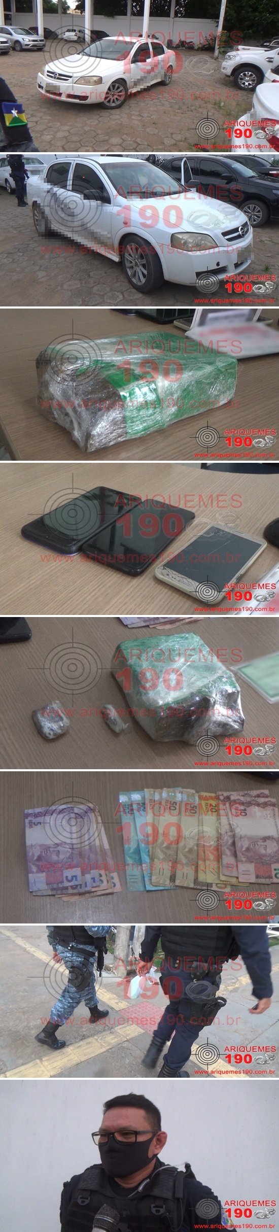 Em mais uma belíssima ação da Polícia Militar, através da ajuda da população com denúncias anônimas, logrou êxito em apreender grande quantidade de droga e colocar atrás das grades três pessoas pelo crime de Tráfico de Drogas. A ação ocorreu por volta das 17h25m desse domingo, 01/11, quando a Central de Operações do 7° BPM recebeu a denúncia anônima, de que um veículo de cor branco contendo três indivíduos estaria de deslocando do município de Alto Paraíso para Ariquemes, trazendo certa quantidade de drogas em seu interior. De imediato as guarnições denominadas: Patrulha Charlie e Força Tática se deslocaram à BR-421, onde realizaram barreiras com intuito de abordar o referido veículo, contudo, sem êxito. Então a guarnição da patrulha Charlie resolveu retornar para mais próximo da cidade por outra via de acesso ao desvio do TB-40 e a Patrulha Força Tática seguiu no TB-40 sentido Alto Paraiso, momento em que a guarnição da patrulha Charlie, ao entrar no desvio do TB-40 notou um veículo GM/Astra de cor branco com placas de Rolim de Moura/RO, com as mesmas características informadas na denúncia. Ao se aproximarem do veículo, os policiais notaram que havia três pessoas em seu interior, sendo dois homens e uma mulher. Realizada a abordagem e revista pessoal aos suspeitos, foram localizadas com um dos indivíduos (02) duas porções de substância aparentando ser Maconha. Ao serem questionados se haveria mais drogas dentro do veículo, os três conduzidos informaram que no porta luvas do carro havia mais substâncias entorpecentes. Os policiais abriram o porta-luvas, onde localizaram no interior um tablete de Maconha pesando 512 Gramas. Diante dos fatos e confirmações da veracidade da denúncia, foi dada voz de prisão aos envolvidos, os quais foram apresentados na Unidade de Segurança Pública (UNISP) juntamente com o veículo, onde ficaram à disposição da autoridade policial plantonista para a tomada de medidas que julgar pertinente.