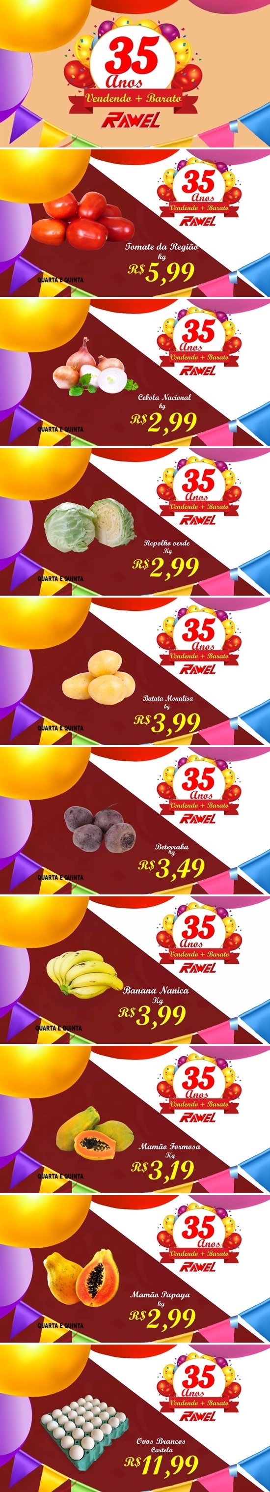 O aniversário é do Rawel, mas quem ganha o presente é você. No Rawel todo dia é dia de comprar mais barato. Confira as promoções imperdíveis desta quarta e quinta-feira no Supermercado Rawel: