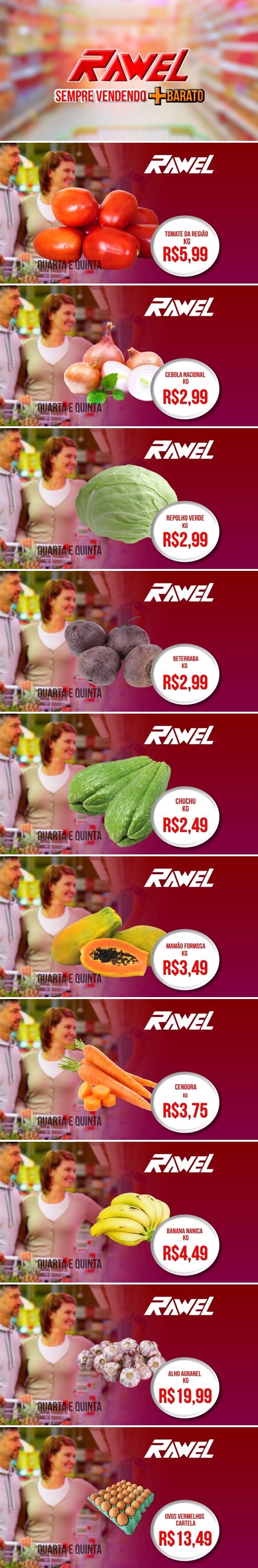 Mais baratos todos os dias é só no Rawel. Na Avenida Jamari, em frente à Praça da Vitória.