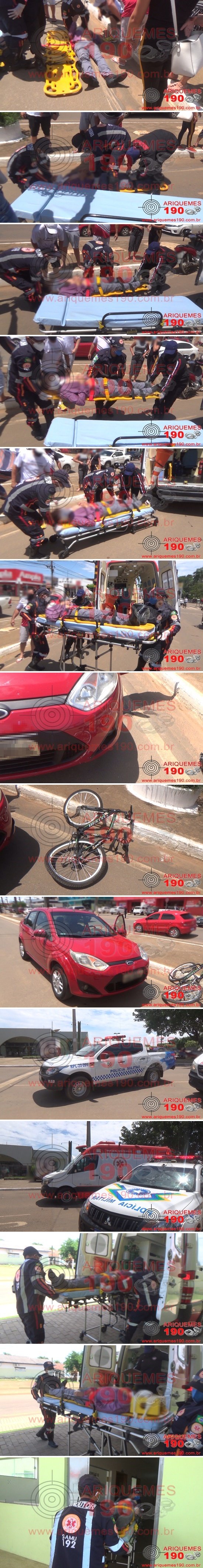 12/03/2026 : Ciclista fica ferida após colisão com carro na Av. Machadinho, no Setor Rota do Sol, em Ariquemes – Vídeo