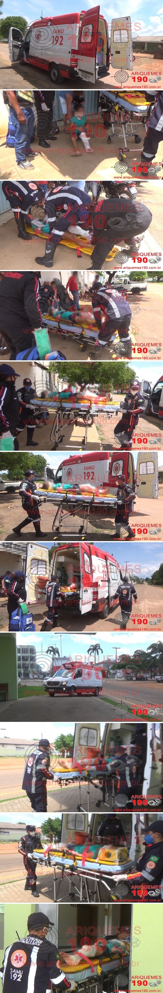Era início da tarde deste sábado, 05/10, por volta das 13h09m, quando a Central do Serviço de Atendimento Móvel de Urgência (SAMU) foi acionada para comparecer na Rua Iara no Jorge Teixeira em Ariquemes/RO, pois teria ocorrido um acidente de trânsito. Imediatamente a equipe do SAMU se deslocou até o local, onde ao chegar, encontrou uma mulher apresentando lesão em membro inferior esquerdo. Prontamente os socorristas iniciaram os procedimentos de primeiros socorros à vítima, imobilizando em prancha rígida, com colar cervical, head block e tala de imobilização no membro ferido. O motociclista dispensou o atendimento médico, pois não apresentava lesões significantes. Após os procedimentos realizados à mulher, esta foi encaminhada à Unidade de Pronto Atendimento (UPA), para ser avaliada pela equipe médica de plantão. Informações passadas à equipe de reportagens da TV do Povo Canal 35.1 e Site Ariquemes 190, dão conta que o acidente aconteceu quando o condutor, juntamente com a passageira, trafegavam em uma moto pela Rua Iara, momento em que ao passarem pelo contorno, o veículo derrapou na areia, resultando na queda das vítimas ao solo.