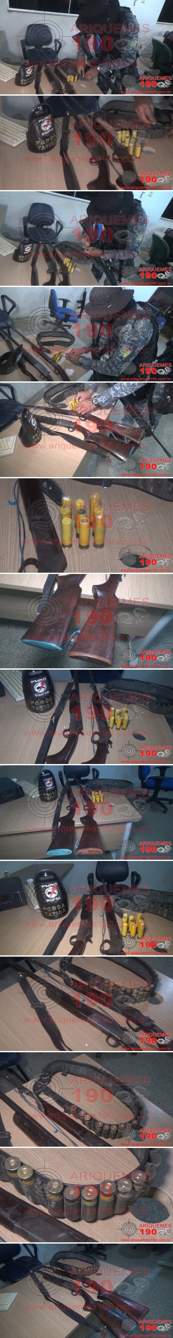 O fato foi registrado por volta das 20h58m, desta quinta-feira, 10/12, quando as guarnições da Polícia Militar denominada Força Tática, comandadas pelos policiais: 3º Sgt. Lemos, SD B. Almeida e SD Nilton, em apoio ao ICMBIO na Reintegração de Posse Na Floresta Nacional do Bom Futuro, realizaram patrulhamento juntamente com o Oficial de Justiça Federal Sr. Antônio Rui Moraes Viana pela Rodovia Floresta Nacional Bom Futuro, Zona Rural de Alto Paraíso/RO, pois o Oficial de Justiça recebeu informações de moradores daquela região, que alguns invasores poderiam estar dentro da Reserva Ambiental em um acampamento improvisado próximo a área de preservação. De posse dessas informações os policiais e o Oficial se deslocaram até o local, onde ao chegarem, localizaram duas barracas feitas de lona dentro da área de uma fazenda, o qual o proprietário não se encontrava no local. Ao se aproximarem da porteira, dois homens foram até a direção dos PMs e do Oficial, momento o qual indagaram os motivos de estarem acampados naquela fazenda e naquelas condições, estes informaram que estavam morando à aproximadamente quatro meses em uma área de invasão ali próximo e que ouviram boatos que esta área seria uma Reserva Ambiental, e por esse motivo teriam saindo do local e se instalado a cinco meses naquela fazenda, momento em que foi visualizado que ambos aparentavam estarem muito nervosos. Diante das suspeitas, os policiais perguntaram se algum deles teria alguma arma de fogo naquele local, foi quando um dos indivíduos assumiu ser proprietário de uma arma de fogo tipo espingarda cal .20 com 09 nove cartuchos intactos e um cinto coldre e este ainda informou que a arma estava desmontada e escondida dentro do mato. Foi realizado deslocamento até o local, onde o referido armamento estava enrolado em pedaço de pano. Já o outro suspeito disse que não possuía nenhuma arma de fogo, porém relatou que sabia onde estava escondida outra arma, onde foi localizada, sendo outra espingarda, que aparentava ser cal .36, e que segundo o mesmo, um rapaz desconhecido teria deixado o armamento escondido naquele local. Mediante aos fatos, constatações e confissão, os indivíduos, juntamente com as armas apreendidas foram apresentados à Unidade de Segurança Pública (UNISP) de Ariquemes/RO, onde o Boletim de Ocorrência Policial (BOP) nº 191527/2020 foi registrado, para tomadas de providências que a autoridade policial plantonista julgar pertinente.