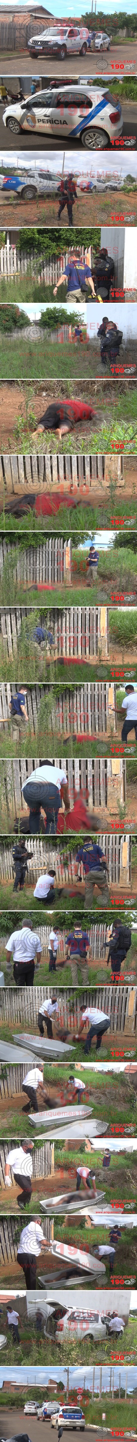 Informações levantadas até o momento pelo Canal 35.1 e Ariquemes190, que a guarnição da Polícia Militar denominada Patrulha Bravo, composta pelos policiais: CB Reis, CB Barroso e SD Gregório, foi acionado pela Central de Operações do 7° BPM, para comparecer na Rua 50 do Setor Zona Sul em Ariquemes/RO às 14h40m dessa sexta-feira, 11/12. Ao chegar no local, os PMs encontraram corpo de um homem em um terreno baldio em estado de decomposição sem o braço esquerdo. Sendo acionado a Polícia Civil, Polícia Técnica e a Funerária São Jorge, que estava de plantão. Após os trabalhos da perícia, constataram que o corpo estaria ali por mais de 72 horas, devido ao estado de decomposição e tudo indica que um cachorro rancou o braço da vítima. Até o momento a vítima do sexo masculino não foi identificada, pois não foi encontrado nenhum documento. Não está descartada a possibilidade de morte natural.