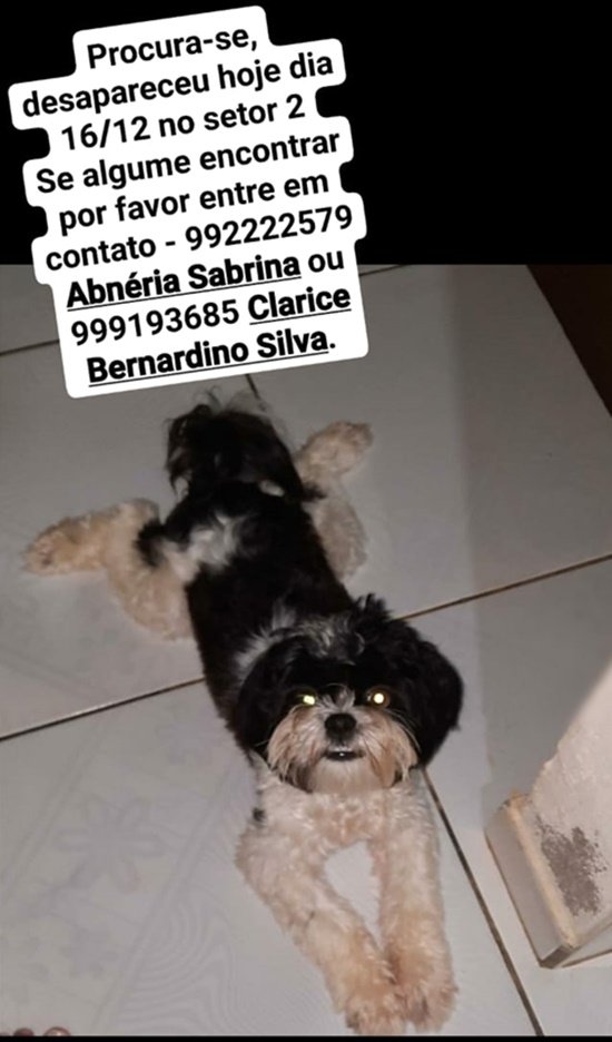 Desapareceu nesta quarta-feira, 16/12, este cachorro que atende pelo nome de Lucki. O pet desapareceu nas imediações do Setor 02 em Ariquemes/RO. Informações sobre o paradeiro de Lucki podem ser repassadas pelo telefone: 99222-2579, falar com Abnéria, ou 99919-3685, falar com Clarice.