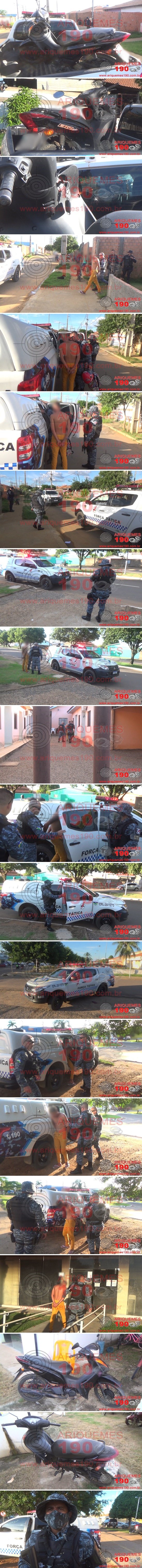Em mais uma belíssima ação da Polícia Militar denominada Força Tática, composta pelos policiais: Sgt. Fabiano, CB P. Roberto e SD Guedes, através da ajuda da população com denúncias anônimas, logrou êxito em recuperar uma moto furtada e prender um elemento na Rua Alegria do Bairro Jardim Feliz Cidade em Ariquemes/RO. A ação ocorreu por volta das 17h20m dessa quarta-feira, 16/12, quando a Central de Operações do 7° BPM recebeu a denúncia anônima, de que um veículo de cor preto estaria em uma residência localizada no referido endereço, e possivelmente seria produto de furto. Com brevidade os policiais se deslocaram até o local, onde ao chegarem, adentraram a casa, momento em que avistaram o referido veículo estacionado no quintal da residência. Ao realizar consulta veicular ao Sistema do Departamento Estadual de Trânsito de Rondônia (DETRAN), constou que a motoneta Honda/Biz, de cor preta com placas de Monte Negro/RO, possuía restrição de Roubo/Furto. A motoneta foi furtada no dia 05/12, conforme a ocorrência n° 188442/2020. Ao realizar abordagem a um homem, este confessou ter furtado o veículo, juntamente com um usuário de entorpecentes, porém não soube informar o paradeiro do indivíduo. Logo após a abordagem, a guarnição se deslocou, juntamente com elemento, até a Av. Rio Branco, porém, sem êxito em capturar o outro infrator. Mediante aos fatos, constatações e confissão, foi dada voz de prisão ao elemento, o qual foi apresentado, juntamente com a motoneta, à Unidade de Segurança Pública (UNISP), onde o Boletim de Ocorrência Policial (BOP) foi registrado, para tomadas de providências que a autoridade policial plantonista julgar pertinente.