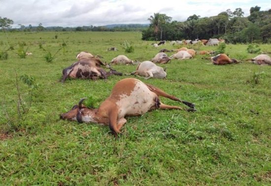 A morte das vacas gordas e dos bezerros causou prejuízo estimado em quase R$ 90 mil para os proprietários do sítio.