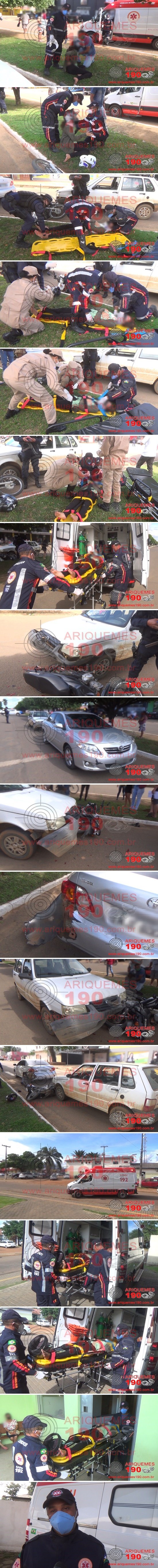 ARIQUEMES: Motociclista fica ferida após colisão entre carros e moto na Av. Canaã