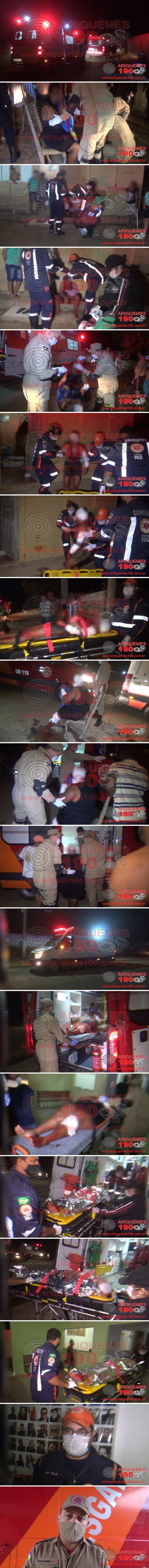 Uma mãe e uma filha foram agredidas por golpes de facão na Rua Aldebar do Bairro Rota do Sol em Ariquemes/RO, neste domingo, 20/12. O fato foi registrado por volta das 23h29m, quando as Centrais do Serviço de Atendimento Móvel de Urgência (SAMU), do Corpo de Bombeiros Militar do Estado de Rondônia (CBMRO) e do 7° BPM foram acionadas para comparecerem no endereço citado, pois duas pessoas teriam sido esfaqueadas. Rapidamente a equipe do SAMU, composta pelos socorristas: Médico Dr.º Ítalo, Enfermeira Ciele, Condutor Josué e Estagiária Miranda, a equipe do Corpo de Bombeiros Militar, composta pelos socorristas: Sgt. Fábio Osmir, SD Streit e SD Delfino, juntamente com uma guarnição da Polícia Militar, composta pelos policiais: CB Odenilson, SD Madeira e SD Abrantes, se deslocaram até o local, onde ao chegarem, constataram a veracidade das informações, encontrando duas vítimas, sendo mãe e filha, as quais apresentavam cortes e vasto sangramento pelo corpo. Prontamente os socorristas iniciaram os procedimentos de primeiros socorros à vítima, sendo a filha, imobilizando em prancha rígida, utilizando atadura na região da cabeça e em ambos os membros superiores, e cobertor térmico, sendo esta encaminhada até a Unidade de Suporte Básico (USB). Já a segunda vítima, a mulher, utilizando atadura em membro inferior na região do joelho, em membro superior esquerdo e na região da cabeça, a qual foi encaminhada em maca à Unidade de Resgate, onde posteriormente estas foram conduzidas à Unidade de Pronto Atendimento (UPA), para serem avaliadas pela equipe médica de plantão. Ao conceder entrevista à equipe de reportagens do Site Ariquemes190 e Canal 35.1 Digital, o Médico Dr.º Ítalo relatou que a filha, apresentava corte profundo na região cervical posterior da cabeça e em ambos membros superiores. Também concedeu entrevista à equipe de reportagens, o Socorrista Sgt. Fábio Osmir que relatou que a mãe apresentava cortes na cabeça, em membro superior esquerdo e membro inferior esquerdo. Segundo narra o Boletim de Ocorrência Policial (BOP), na tarde do fato, o autor dos golpes de facão teria cometido o crime de Violência Doméstica contra sua esposa, conforme a ocorrência nº 231056. Porém após o infrator ser liberado, este retornou a sua residência a procura de sua esposa e não a encontrou, então se apossou de um facão e foi a procura desta na casa de parentes, contudo novamente não a localizou. O autor começou a proferir ameaças de morte para quem ali estava, em dado momento começou a desferir golpes de facão contra parentes de sua esposa, sendo que conseguiu golpear com o facão nas duas vítimas, sendo elas a mãe e a filha parentes da esposa. Logo após a ação o infrator deslocou-se até a casa da outra irmã, localizada na Rua Liberdade do Bairro Cidade Feliz, onde novamente o infrator proferiu ameaças de morte e desferiu golpes de facão na vidraça da janela e posteriormente evadiu-se do local tomando rumo ignorado. De posse dessas informações, os policiais realizaram diligências pelas imediações, contudo, não localizaram o algoz. O Boletim de Ocorrência Policial (BOP) foi registrado, para tomadas de providências que a autoridade policial plantonista julgar pertinente, onde a Polícia Civil já investiga o caso.