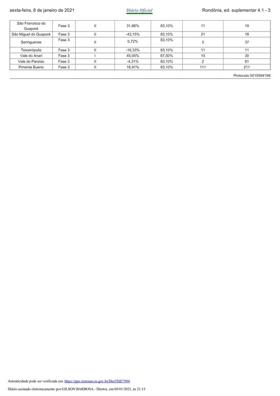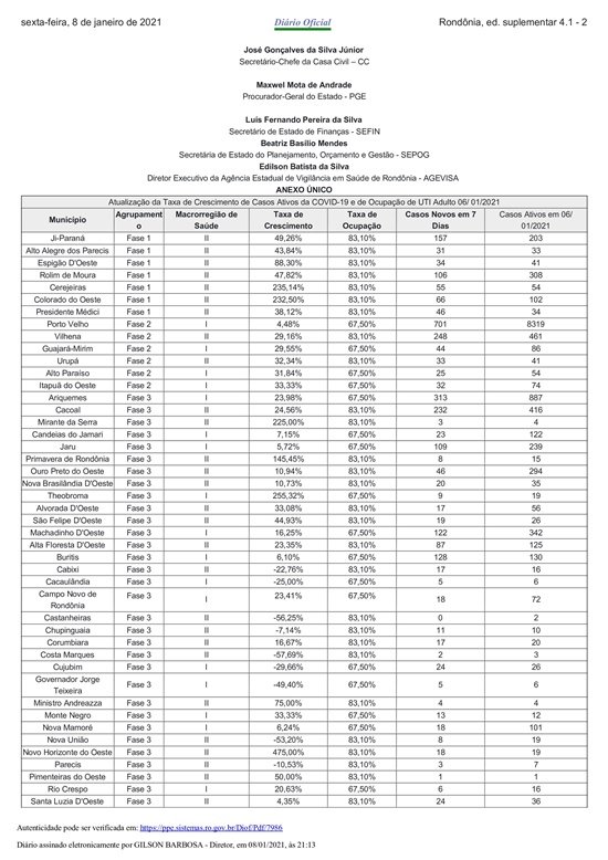 Ji-Paraná , Alto Alegre dos Parecis, Espigão D'Oeste, Rolim de Moura, Cerejeiras, Colorado do Oeste e Presidente Médici foram reclassificadas para a fase 1.