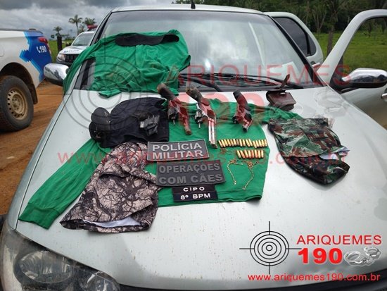 Em um trabalho incansável da Operação Hórus, juntamente com as guarnições da Polícia Militar denominadas Patrulha Alpha, Patrulha Bravo e Patrulha Charlie, com apoio da Patrulha Rural da CIPO, culminou no início da tarde, por volta das 12h30m desta quarta-feira, 20/01, em prender um elemento que arremessou armas pela janela de um automóvel. A ação iniciou em um patrulhamento pela Linha C-90 do município de Campo Novo/RO, onde os policiais realizaram um bloqueio da via, para revistar às pessoas e veículos, momento em que um automóvel Fiat/Palio, de cor verde com placa de Ariquemes/RO, desobedeceu à ordem de parada dos policias e empreendeu fuga em alta velocidade pela Linha C-01. As guarnições realizaram o acompanhamento por aproximadamente 3 quilômetros e visualizaram o momento que o condutor arremessou objetos do veículo para a lateral da via, que aparentava ser armas de fogo. No que ao se aproximarem do veículo, o condutor desembarcou e tentou empreender fuga a pé, contundo foi alcançado e contido pelos policiais. Ao realizarem revista ao veículo, foi localizado no seu interior 8 munições de Calibre .38, 01 coldre preto, 03 toucas ninja camuflada tipo balaclavas e duas camisetas de cor verde de manga longa. O vidro da porta do lado direito do veículo estava quebrado e as mãos do infrator estavam com pequenos cortes e sangramentos. Foi visualizado durante revista ao infrator que em sua cintura, havia marcas vermelhas na pele em formato semelhante a de uma arma de fogo. Diante da situação, os policiais fecharam os acessos ao local, impedindo que pessoas e veículos trafegassem, e retornaram ao local onde o indivíduo foi visualizado arremessando os objetos pela janela quebrada, onde foram encontradas 03 armas de fogo, sendo um revólver Calibre .38, cano 2 polegada, contendo 05 munições intactas, um revólver Calibre .38, special acabamento inoxidável, cano 6 polegada, contendo 06 munições intactas, 01 revólver Calibre .38 da marca Taurus, acabamento oxidável, cano de 4 polegada, possivelmente adulterada, contendo 06 munições intactas, totalizando 25 munições. O infrator informou aos policiais que estava levando o armamento para uma área de assentamento, onde o mesmo confessou ter comprado 10 alqueires de terra pelo valor de R$ 20.000,00 (vinte mil Reais). Mediante aos fatos, constatações e confissão, foi dada voz de prisão ao infrator, sendo posteriormente este conduzido, juntamente com os produtos de origem ilícitas, à Delegacia de Polícia Civil de Buritis/RO, onde o Boletim de Ocorrência Policial (BOP) n° 10297/2021 foi registrado, para tomadas de providências que a autoridade policial plantonista julgar pertinente.