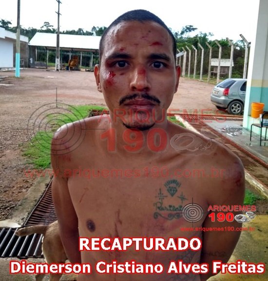 O foragido Diemerson Cristiano Alves Freitas, foi recapturado por volta das 09h33m do mesmo dia na Linha C-70 e 75 de Ariquemes/RO. Segundo narra o BOP, na hora de ser recapturado, o foragido foi pra cima de um Policial, que revidou a injusta agressão, efetuando dois disparos de arma de fogo com munição não letal contra o Diermerson.