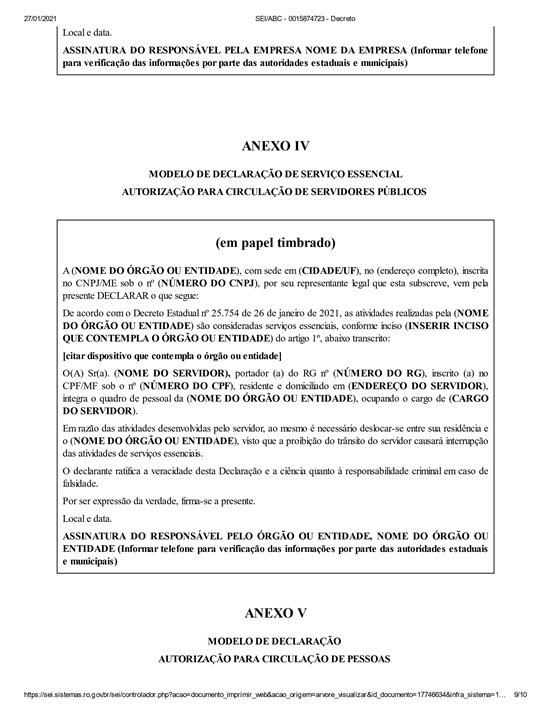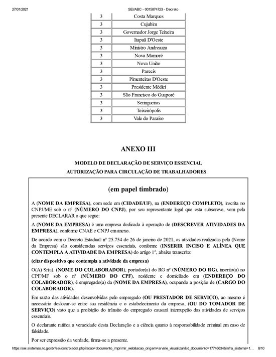 Diferentemente do que fora confirmado no início da noite por alguns assessores do Governo do Estado, o atual Decreto (que estabelece medidas de isolamento restritivo) não abrange todos os municípios rondonienses. O documento é enfático ao estabelecer sua vigência de (10) dez dias a contar da meia noite deste domingo, 17/01.