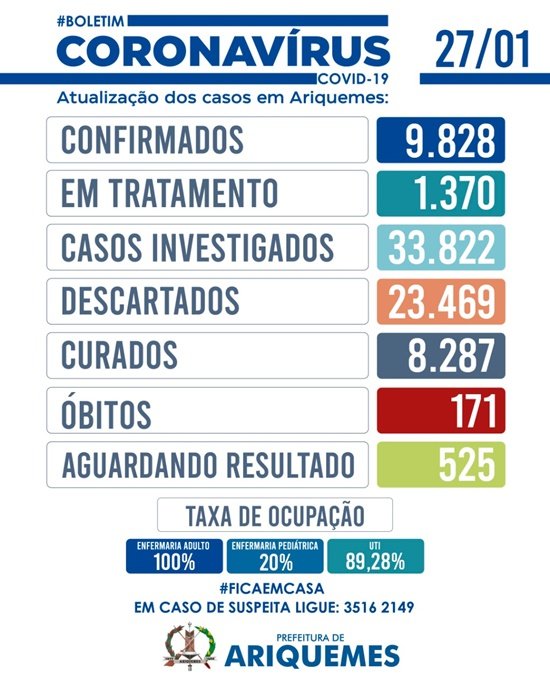 Nesta quarta-feira (27), a cidade registra 8.287 pessoas curadas, 30 a mais do que no último boletim epidemiológico. Foram confirmados 88 novos casos, totalizando 9.828.