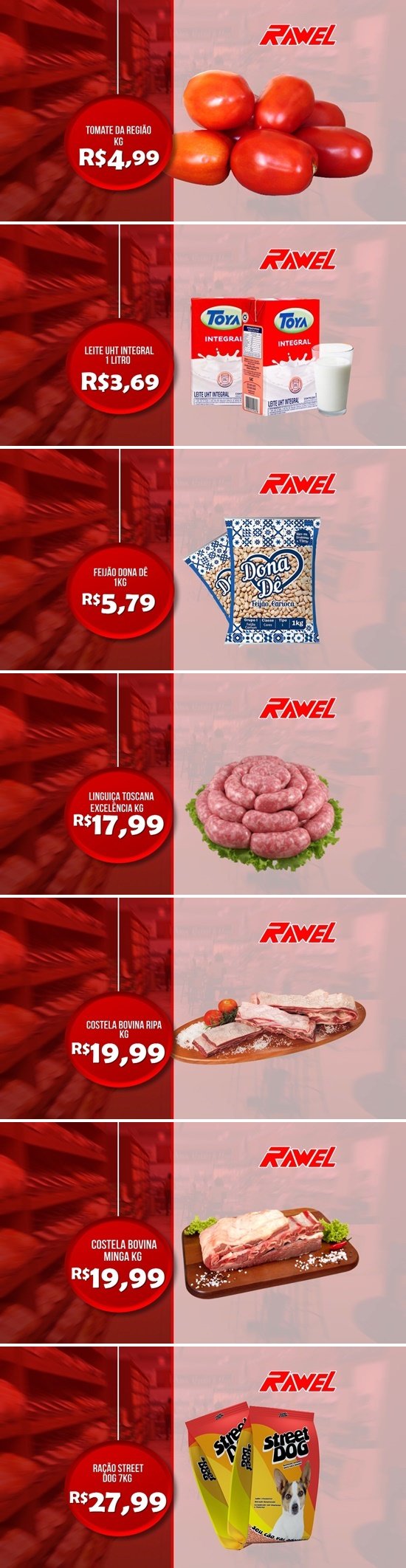 Mais baratos todos os dias é só no Rawel. Na Avenida Jamari, em frente à Praça da Vitória.
