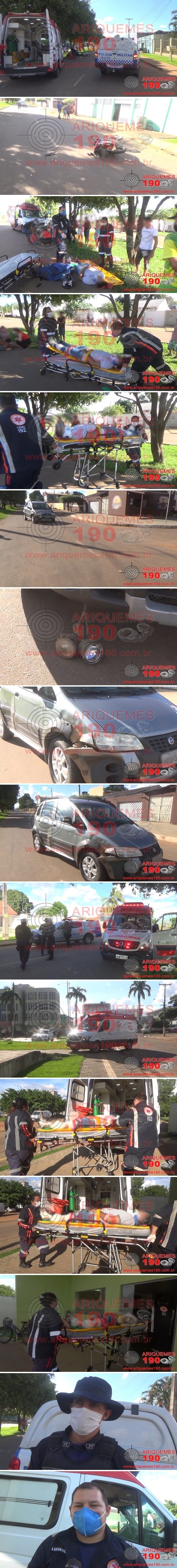 Na tarde desta segunda-feira, 01/02, as Centrais do Serviço de Atendimento Móvel de Urgência (SAMU) e do 7° BPM foram acionadas, para comparecerem na Av. Rio Branco do Bairro Jardim Jorge Teixeira em Ariquemes/RO, pois teria ocorrido um acidente de trânsito. Rapidamente uma equipe do SAMU, composta pelos socorristas: Técnico em Enfermagem Luciano e Condutora Érica, juntamente com uma guarnição da Polícia Militar, composta pelos policiais: 3°Sgt. Reinaldo, SD Júlio e SD Godoy, se deslocaram até o local, onde ao chegarem, visualizaram duas vítimas, sendo um homem caído ao solo, que apresentava lesão em membro inferior esquerdo, e uma mulher sentada, em estado de choque. Prontamente os socorristas iniciaram os procedimentos de primeiros socorros à vítima, o homem, imobilizando em prancha rígida, com colar cervical e tala de imobilização no membro ferido. Já a segunda vítima, a mulher, foi encaminhada à Unidade de Pronto Atendimento (UPA) por populares. Após os procedimentos realizados à vítima, esta foi encaminhada à UPA, para ser avaliada pela equipe médica de plantão. Ao conceder entrevista à equipe de reportagens do Site Ariquemes190 e Canal 35.1 Digital, o Técnico em Enfermagem Luciano relatou que o homem apresentava fratura na tibia e fibula. Informações coletadas pela equipe de reportagens, dão conta que o acidente aconteceu quando o motociclista, juntamente com a passageira, trafegavam pela Av. Rio Branco, sentido Av. Candeias, momento em que ao realizar a manobra de conversão a esquerda, houve a colisão com a lateral dianteira direita do veículo Fiat/Idea, que transitiva pelo mesmo sentido. Ambos os veículos ficaram com avarias. A Polícia Técnica foi acionada e esteve no local, onde realizou os trabalhos de praxe. O Boletim de Ocorrência Policial (BOP) foi registrado, para tomadas de providências cabíveis.