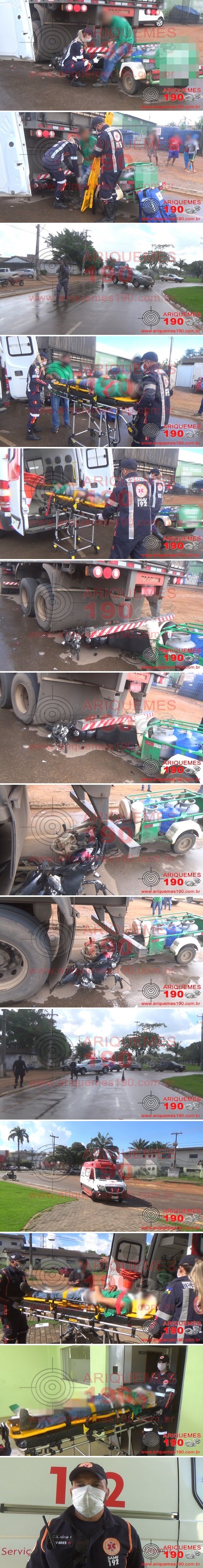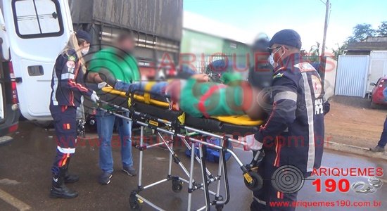 ARIQUEMES: Motociclista sofre fratura na perna após colisão com carreta bitrem na Av. Capitão Silvio