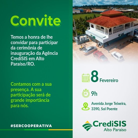 Reconhecidamente, uma das cooperativas de crédito do Norte do país de maior credibilidade, o Sistema CrediSIS chega a Alto Paraíso nesta segunda-feira, 8 de fevereiro, quando a agência será inaugurada na cidade.