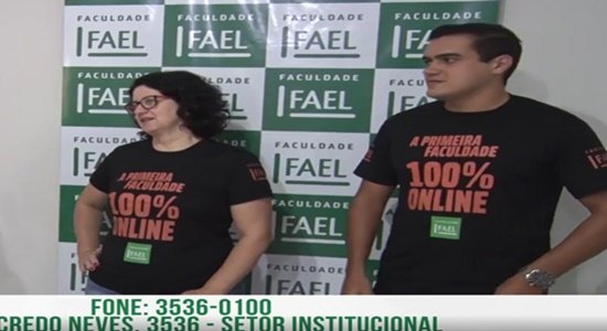 A FAEL conta com o curso de Gestão Pública e Gestão de Trânsito, que são muito importantes para os concursos públicos, e você termina em 2 anos. Aproveite o vestibular da FAEL que já está aberto. Através dos cursos à distância você pode escolher onde e quando estudar. E olha o que a FAEL preparou para os telespectadores do Programa Bronca da Pesada, que vai ao ar a partir das 11 horas, com reprise às 20 horas, pela TV do Povo Canal 35 e agora no Digital 35.1, filiada Rede Meio Norte. Quem assistir a propaganda no Programa da Pesada e entrar em contato com a FAEL, através do telefone: 3536-0100, ou pelo Whatsapp: 9-9319-1753 e 9-8429-0022, ou ir até o Polo localizado na Av. Tancredo Neves, 3536, Setor Institucional em Ariquemes/RO, e dizer que assistiu e se matricular em algum curso, ganhará bolsa de 40% no curso todo. Mas corra, a promoção é válida até sexta-feira, 12/02. Não perca tempo. Garanta um Futuro Melhor! Confira o vídeo: