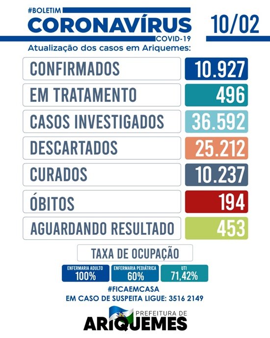 Nesta quarta-feira (10), a cidade registra 10.237 pessoas curadas, 164 a mais do que no último boletim epidemiológico. Foram confirmados 69 novos casos, totalizando 10.927.