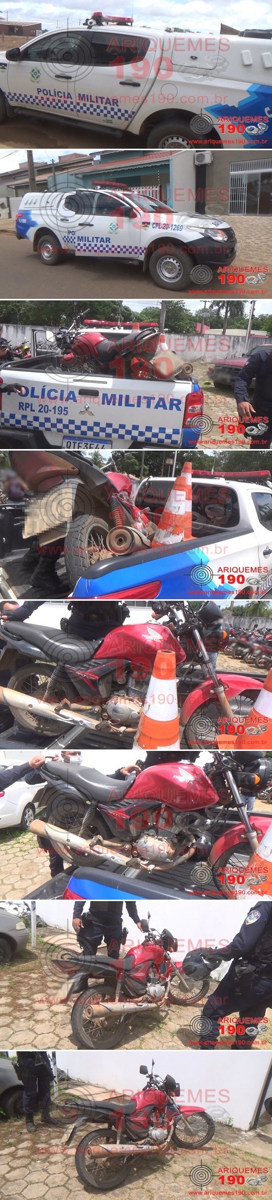 Na manhã desta segunda-feira, 15/02, uma guarnição da Polícia Militar realizava patrulhamento de rotina pela Rua Inglaterra do Jardim Europa em Ariquemes/RO, momento em que avistou uma moto suspeita estacionada. Os policiais realizaram consulta veicular ao Sistema do Departamento Estadual de Trânsito de Rondônia (DETRAN), onde constou que a motocicleta Honda/Fan de cor vermelha possuía restrição de Roubo/Furto. Nenhum suspeito foi localizado pela guarnição. Mediante aos fatos, a motocicleta foi apresentada, juntamente com um capacete de cor preto que estava na moto, à Unidade de Segurança Pública (UNISP), onde o Boletim de Ocorrência Policial (BOP) nº 23649/2021 foi registrado, para tomadas de providências posteriores.