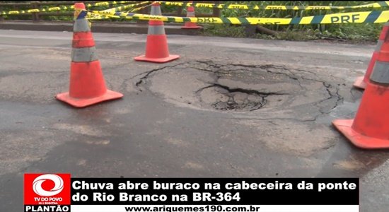 Devido as fortes chuvas que estão caindo intensamente em Ariquemes/RO, acabou provocando uma erosão na cabeceira da Ponte sobre o Rio Branco, que fica localizada na BR-364, abrindo um buraco na pista. A Polícia Rodoviária Federal (PRF) esteve no local realizando o controle do tráfego, e os funcionários do Departamento Nacional de Infraestrutura de Transportes (DNIT), estavam realizando a manutenção da ponte. Concedeu entrevista à equipe de reportagens, o PRF Bento. Confira a matéria realizada pela equipe de reportagens do Site Ariquemes190 e Canal 35.1 Digital: