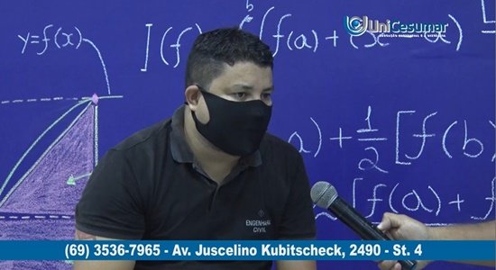 Daniel Costa iniciou o curso de Engenharia Civil na Unicesumar em 2019. “Eu indico para qualquer pessoa, que quiser fazer Engenharia Civil, faça na Unicesumar.” disse Daniel, ao conceder entrevista à equipe de reportagens do Site Ariquemes190 e Canal 35.1 Digital. Em entrevista, Daniel falou sobre o curso e a Instituição. Venha você também para a Unicesumar! Localizada na Avenida Juscelino Kubitschek, 2490 - Setor 04 ou para mais informações: 3536-4323 ou 9 9377-4323. Confira o vídeo: