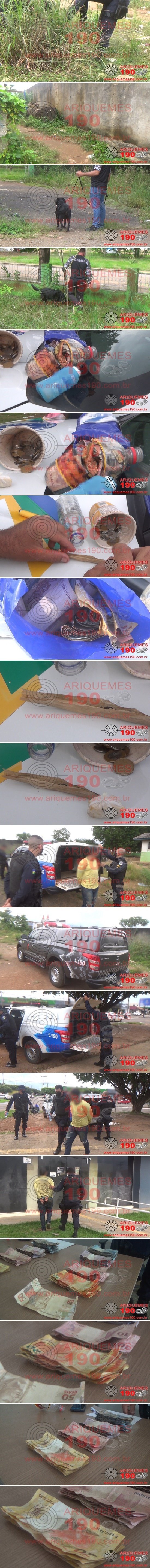 ARIQUEMES: PM apreende drogas e dinheiro escondido em moita no Institucional - Suspeito é conduzido à UNISP