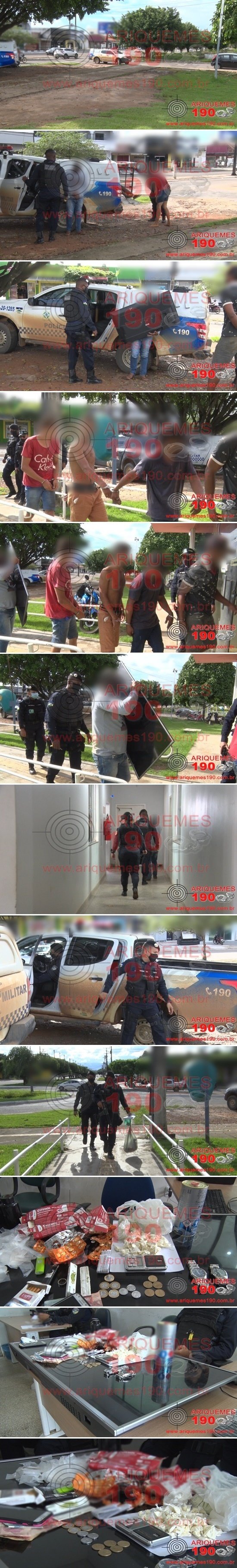 A Polícia Militar de Rondônia (PMRO) no domingo, 28, prendeu três homens pelo crime de tráfico de drogas e apreendeu 760 gramas de cocaína, em Bom Futuro – Distrito de Ariquemes. O flagrante ocorreu após as denúncias de que pessoas estavam repassando notas falsas e que algumas delas estavam num local onde era um ponto de venda de entorpecentes.