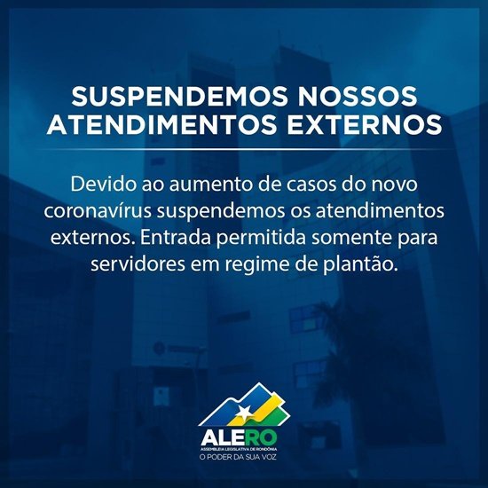 A suspensão de entrada de pessoas na Casa, se estende ainda para a Escola do Legislativo. Somente parlamentares e servidores, em regime de plantão, poderão ingressar na sede do Parlamento, utilizando máscaras e os demais cuidados determinados no protocolo de saúde.