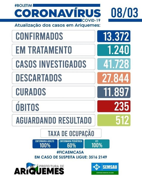 Veja todas as informações sobre os gastos municipais específicos no combate ao novo coronavírus, como as despesas realizadas, plano de contingência, acompanhamento dos chamamentos públicos, relação de pessoas vacinadas e demais dados, acessando o site: http://coronavirus.ariquemes.ro.gov.br/.