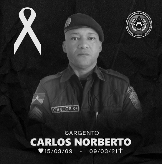Nesta data de 09 de março de 2021 a ASPRA vem por meio deste, manifestar seu profundo pesar pelo falecimento do SGT PM Carlos Norberto, em decorrência de complicações da COVID-19.