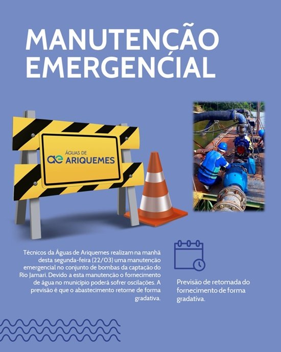 Técnicos da empresa já trabalham na manutenção. A previsão é de que a retomada do abastecimento ocorra de forma gradativa após a finalização do serviço.