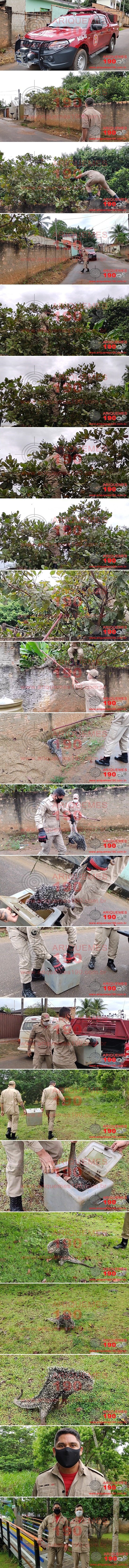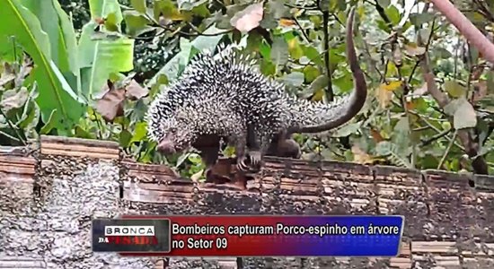 A Central do Corpo de Bombeiros Militar do Estado de Rondônia (CBMRO) foi acionada, na manhã deste sábado, 20/03, por volta das 08h30m, para capturar um Porco-espinho que estava em uma árvore de um quintal de uma residência, localizada na Rua Palmas do Setor 09 em Ariquemes/RO. Uma equipe do Corpo de Bombeiros, composta pelos: CB Lima Junior e SD Streit, se deslocou até o local, onde ao chegar, constatou a veracidade das informações, encontrando o referido animal em cima da árvore, sendo que no quintal da casa havia 4 cachorros. Preocupados com que o animal viesse a cair no quintal, os bombeiros tiveram uma grande dificuldade em retirar o Porco-espinho da árvore, porém conseguiram capturar o animal com segurança. Logo após a captura, o Porco-espinho foi conduzido e solto em seu habitat. Ao encontrar tais animais em residências ou em estabelecimentos, fazer contato imediatamente à Central do Corpo de Bombeiros através do número funcional 193.
