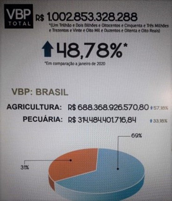 Em 2020, o VBP chegou a R$ 15,2 bilhões.
