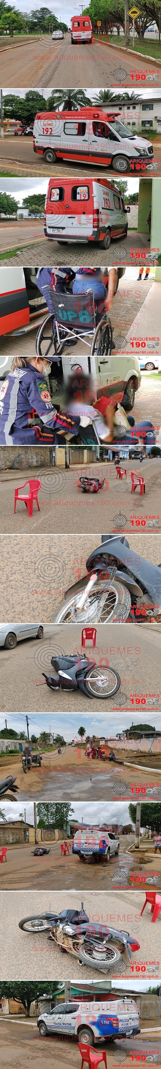 ARIQUEMES: Condutora fica ferida após colisão entre motos na Av. Perimetral Leste