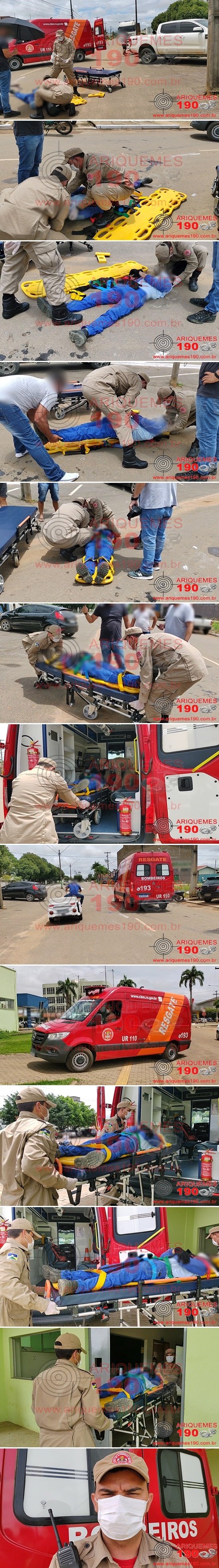 Eram por volta das 10 horas desta segunda-feira, 29/03, quando a Central do Corpo de Bombeiros Militar do Estado de Rondônia (CBMRO) foi acionada, para comparecer na Av. Rio Branco em Ariquemes/RO, pois teria ocorrido um acidente de trânsito. Rapidamente a equipe do Corpo de Bombeiros, composta pelos socorristas: Sgt. W. Barbosa e SD Manganaro, se deslocou até o local, onde ao chegar, visualizou um jovem caído ao solo, o qual apresentava escoriações pelo corpo e se queixava de dores na região do membro superior esquerdo. De pronto os socorristas iniciaram os procedimentos de primeiros socorros à vítima, imobilizando em prancha rígida, com colar cervical e head block, sendo posteriormente esta conduzida à Unidade de Pronto Atendimento (UPA), para ser avaliada pela equipe médica de plantão. Informações passadas à equipe de reportagens da TV do Povo Canal 35.1 e Site Ariquemes 190, dão conta que o acidente aconteceu, quando a vítima trafegava em uma moto tracionando um reboque, pela Av. Rio Branco, momento em que houve a perda do controle da direção do veículo, ocasionando a queda e as escoriações da vítima.