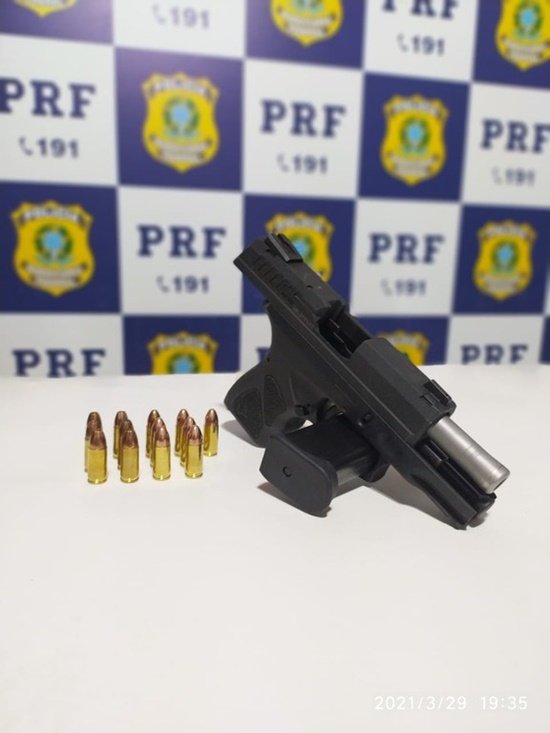 Durante a fiscalização do automóvel, policiais encontraram, no porta luvas, uma pistola 9mm., de fabricação nacional. O motorista afirmou ser o proprietário do armamento, registrado conforme a lei, porém, disse não ter autorização para o porte da pistola e que estava ciente da infração.