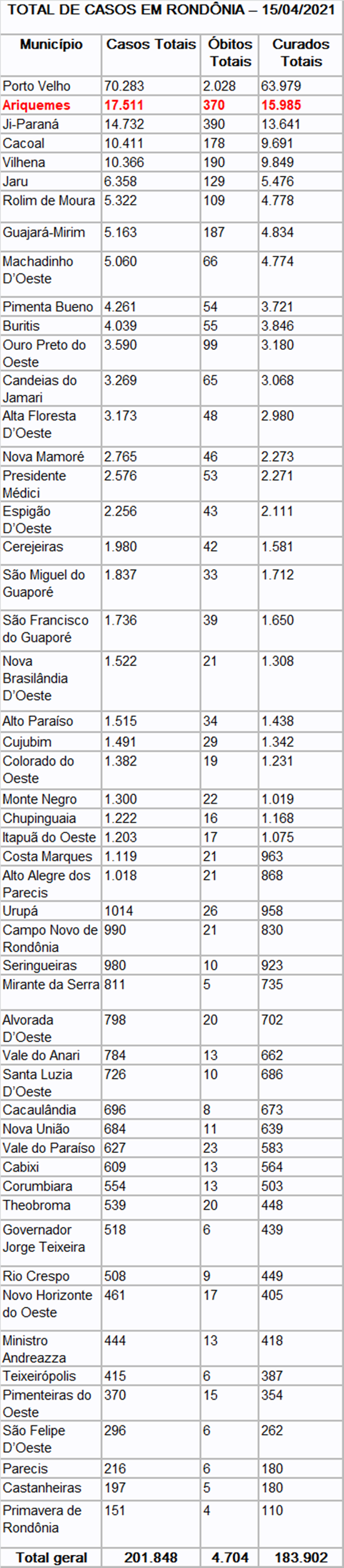 COVID-19: JÁ SÃO 183.902 CURADOS - Edição 391 – Boletim diário sobre coronavírus em Rondônia