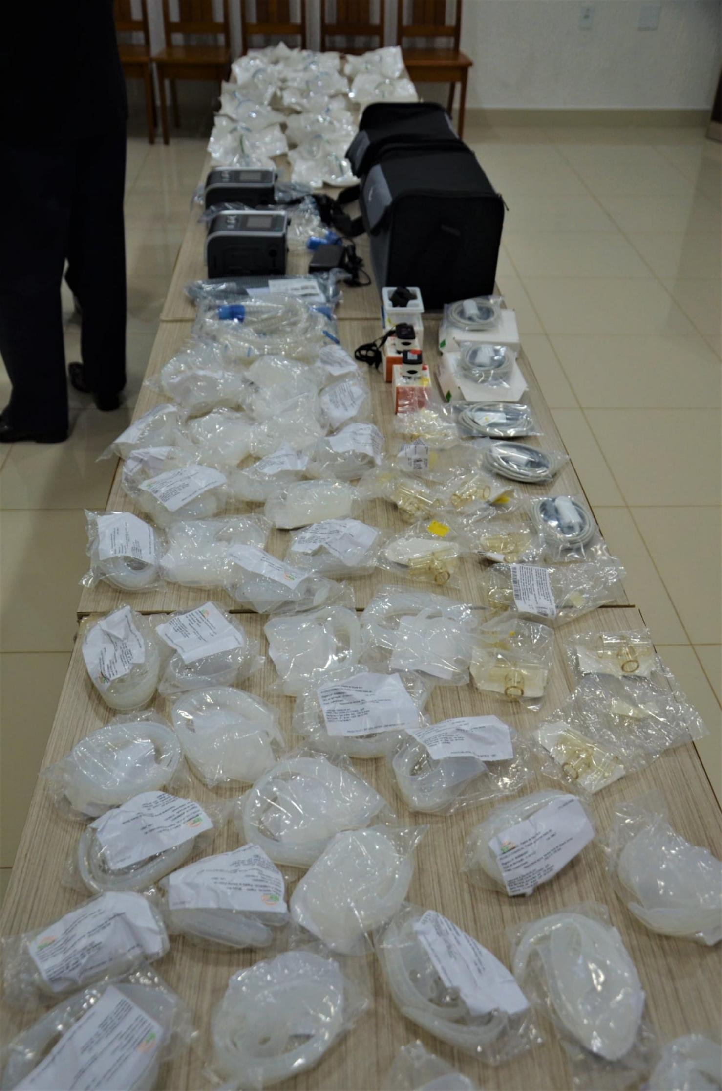 A Secretaria de saúde recebeu da OAB: 02 Aparelhos de Ventilação Não-Invasiva, 30 Filtros Bacterianos de Ventilação Mecânica, 05 Sensores Oxímetria Adulto, 40 Presilhas para Máscaras, 03 Oxímetros, além de outros insumos.