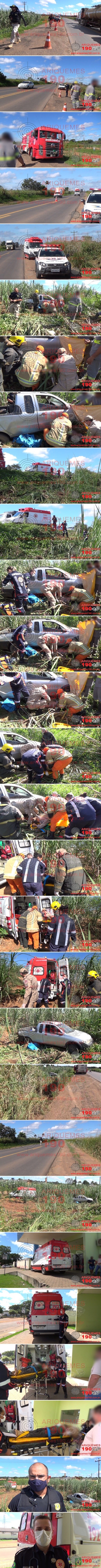 Eram por volta das 09 horas desta quarta-feira, 28/04, quando as Centrais do Serviço de Atendimento Móvel de Urgência (SAMU), do Corpo de Bombeiros Militar do Estado de Rondônia (CBMRO), de Operações da Polícia Militar e da Polícia Rodoviária Federal (PRF) foram acionadas, para comparecerem na BR-364, perímetro em compreende a cidade de Ariquemes/RO, pois teria ocorrido um grave acidente de trânsito e possivelmente teria uma vítima embaixo do carro. Imediatamente uma equipe do SAMU, juntamente com uma equipe do Corpo de Bombeiros em um caminhão Auto Bomba Tanque (ABT), uma guarnição da Polícia Militar e uma equipe da PRF, se deslocaram até o local, onde ao chegarem, visualizaram um homem com a parte do corpo embaixo do carro, o qual apresentava escoriações, onde populares já prestavam socorro à vítima. De pronto os socorristas iniciaram os procedimentos de primeiros socorros ao homem, imobilizando em prancha rígida com colar cervical, sendo posteriormente este conduzido para Unidade de Pronto Atendimento (UPA), para ser avaliado pela equipe médica de plantão. Ao conceder entrevista à equipe de reportagens do Site Ariquemes190 e Canal 35.1 Digital, o Médico do SAMU, Dr.° Fogaça relatou que a vítima se queixava de dor torácica e na coluna lombar. Informações coletadas pela equipe de reportagens da TV do Povo Canal 35.1 e Site Ariquemes 190, dão conta que o acidente aconteceu quando a vítima trafegava em seu automóvel Fiat/Strada pela BR-364, sentido Porto Velho/RO, sendo que em determinado momento, o condutor tentou realizar uma ultrapassagem, porém uma carreta vinha no sentido contrário. O condutor para não colidir com a carreta, invadiu às margens da via, momento em que houve a perda do controle da direção do veículo, resultando em um capotamento. A vítima estava sem cinto de segurança, a qual foi arremessada para fora do veículo.